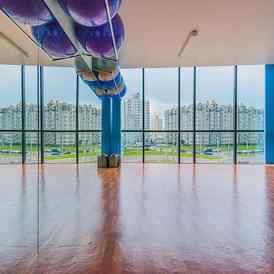 Занятия проходят в просторном светлом зале, рассчитанном не более чем на 15 человек. Помещение оснащено системой кондиционирования и профессиональной музыкальной системой.